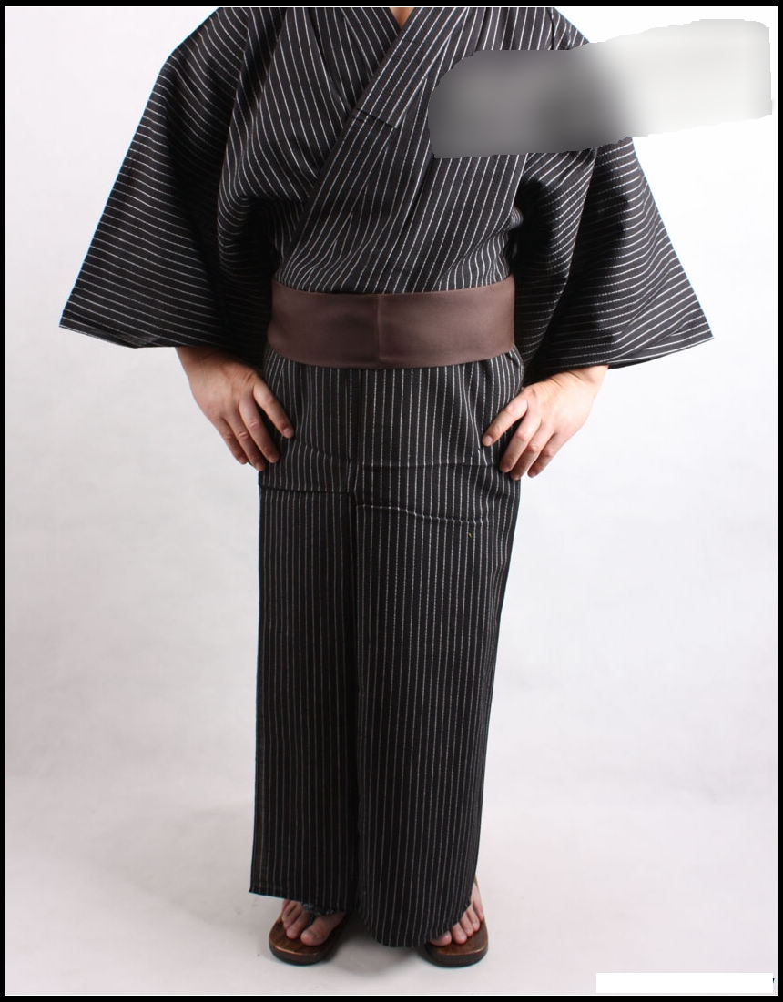 1. 男式浴衣的穿法比较简单,首先将浴衣左襟搭在右襟上,然后用一根绑带在腰部固定浴衣。